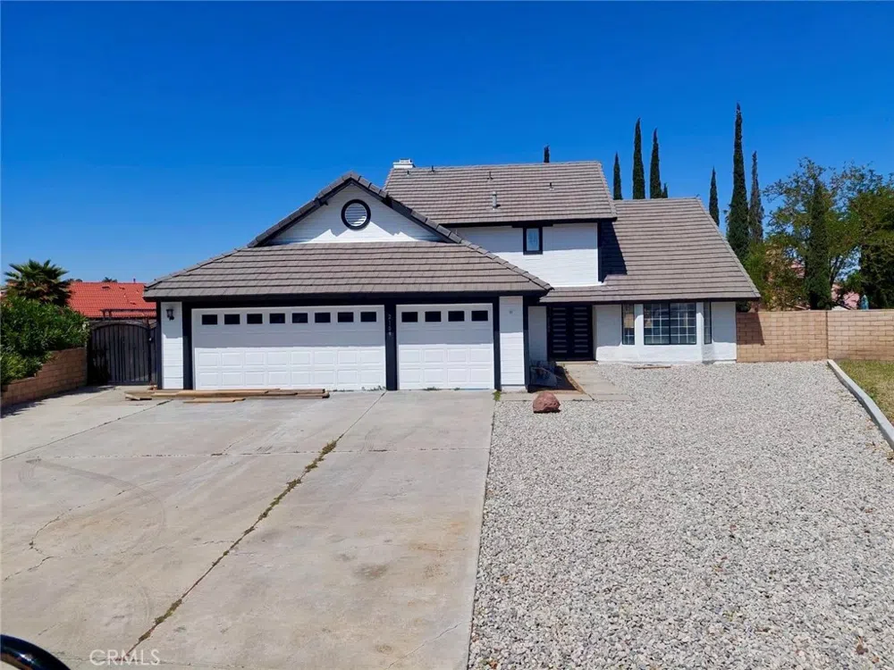 Welcome to this newly renovated 2,081 sqft home featuring two stories and a spacious backyard with a lot size of 11,781 sqft. Every black and white fixture and feature has been meticulously selected and renovated to radiate luxury, elegance, and a modern finish throughout the home. Upon entering the main floor you are greeted with the living room, dining room, kitchen, family room with fireplace, sliding doors leading to the backyard, one bedroom, a full bathroom, laundry room, 3-car garage, and a small storage space under the stairs. As you take the stairs to the second floor, you will find a midway counter and cabinet space bathed in natural light from nearby windows. At the top, directly in front of the stairs will be the entrance to the primary bedroom featuring a balcony overlooking the backyard, full bathroom with double sinks, and walk-in closet. Continuing down the hallway will be 2 bedrooms, a full bathroom, and an indoor balcony that offers a view of the living room below. This is the perfect home for anyone looking for privacy, safety, and a new quality of life in the city of Palmdale. Come and see it for yourself!