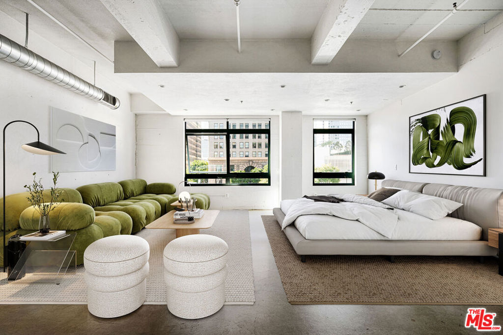 Gorgeous studio at the iconic Eastern Columbia live/work building. The historic 1930's Art Deco building is one of the most sought-after addresses in Downtown Los Angeles and qualifies for Mills Act property tax savings. This West-facing second floor unit offers a classic open floor plan, high ceilings, oversized casement windows, stained concrete floors, updated kitchen and city views. The unit also includes a rare storage unit included just down the hall. The building's common areas were decorated in Hollywood Regency splendor by interior designer Kelly Wearstler. The building features 24/7 front desk security, fitness center, and the famous rooftop pool, hot tub, and sundeck with spectacular views of the iconic clock tower and city beyond. Within blocks to all DTLA has to offer including art galleries, notable hotels, APPLE Flagship Store, Whole Foods, Fashion District, Grand Central Market, Crypto.com Arena, and so much more!